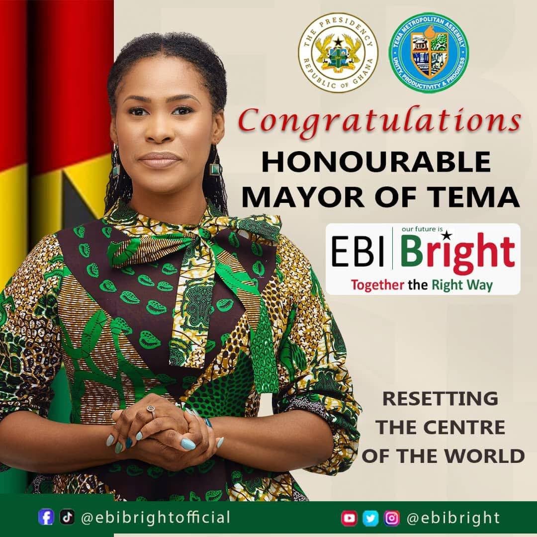 Ebi Bright, former NDC Parliamentary Candidate for Tema Central, began her role as the Mayor of Tema.